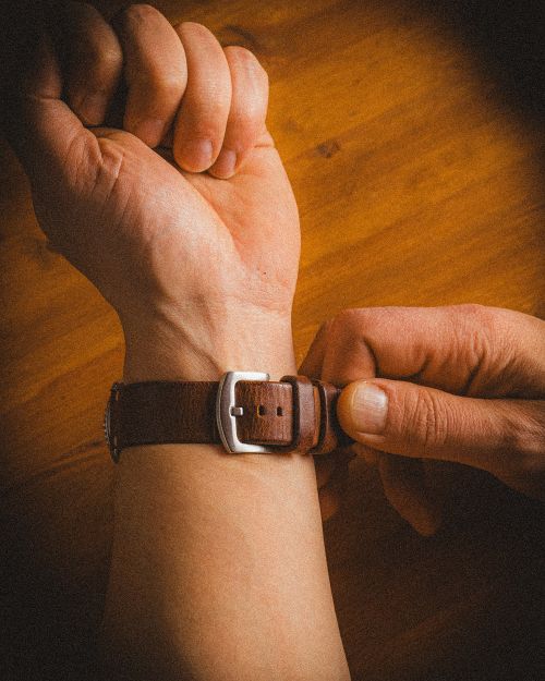 Этот ремешок — для тех, кто ценит простые и честные вещи. Без лишнего — только кожа, металл и ручная работа.